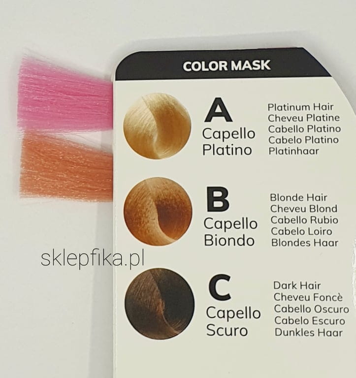 Tę wyjątkową maskę koloryzującą możesz stosować do włosów naturalnych, farbowanych i rozjaśnianych. Nowy kolor zyskasz już w zaledwie 2 minuty! Półtrwałe maski koloryzujące Fanola Color Mask są dostępne w 9 różnych kolorach, które można ze sobą mieszać, aby uzyskać nieskończoną liczbę odcieni chromatycznych.